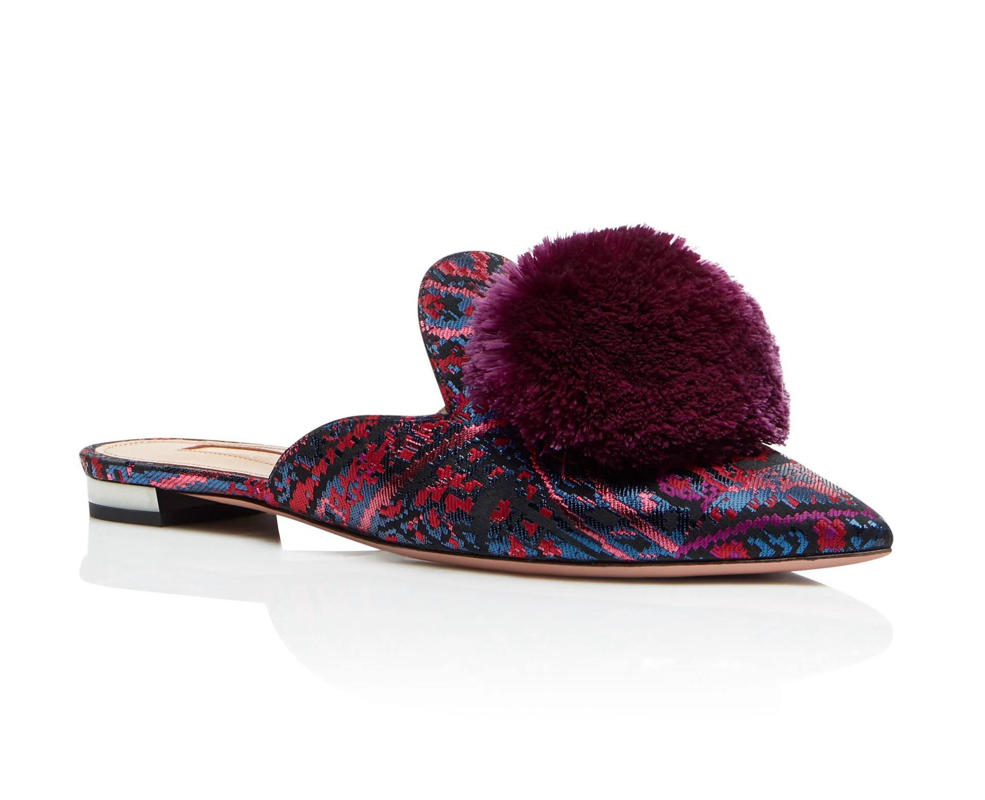 Party season is among us, which means seriously sore feet. The days of suffering in the name of fashion are over. So instead, take a high-heel hiatus with a fancy flat. From embellished mules to velvet pom poms, this is dancefloor decadence without the ache!