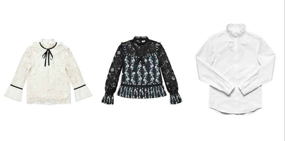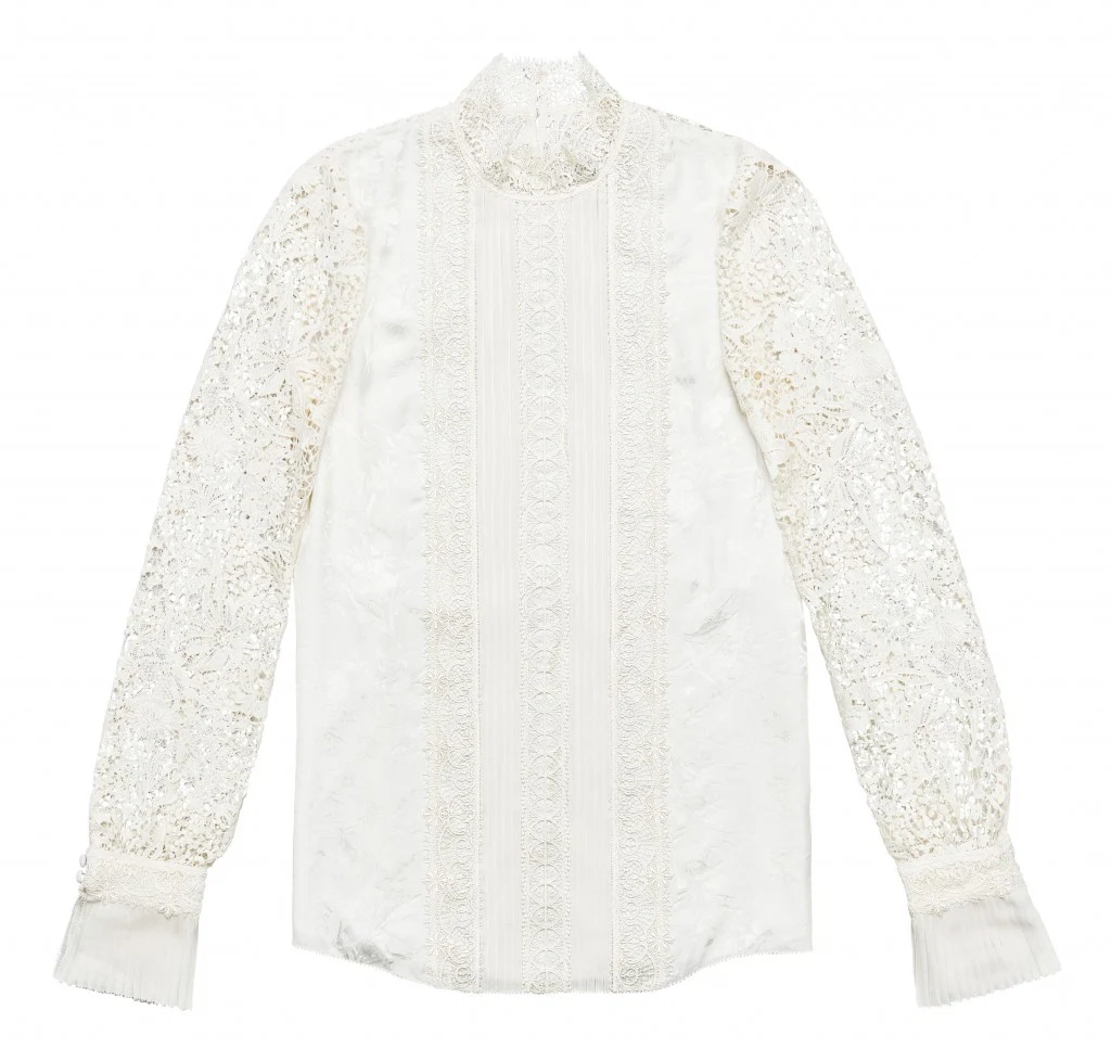 Off-white lace blouse, €99, black lace blouse, €129, white shirt, €79.99