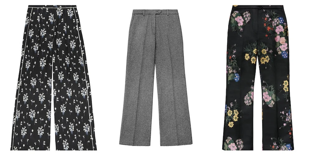 Floral wide leg pant, €79.99, grey wool pant, €99, floral pleated pant, €99