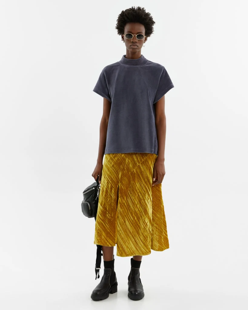 Mustard velvet skirt, €195 at bimbaylola.com