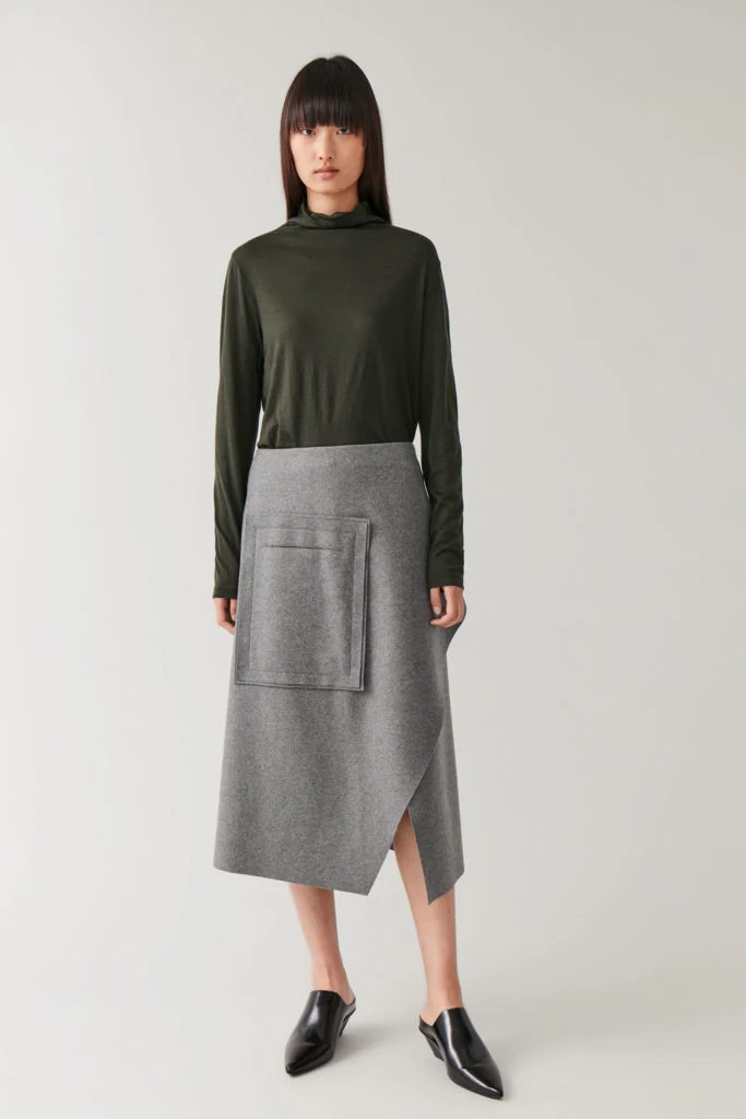 Asymmetric wool-mix wrap skirt, €99 at Cos