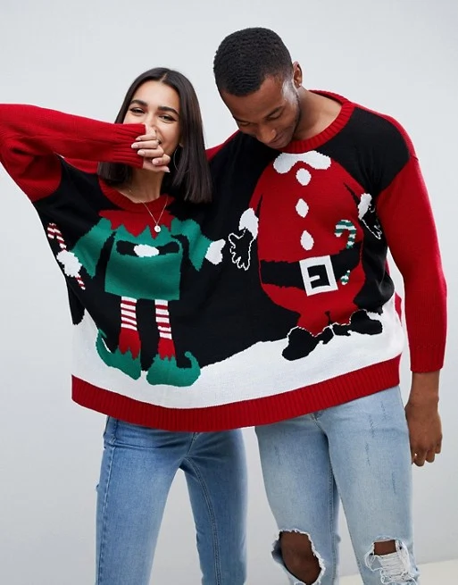 Santa and elf two person Christmas jumper in multi, Boohoo, €34.56 at asos.com
