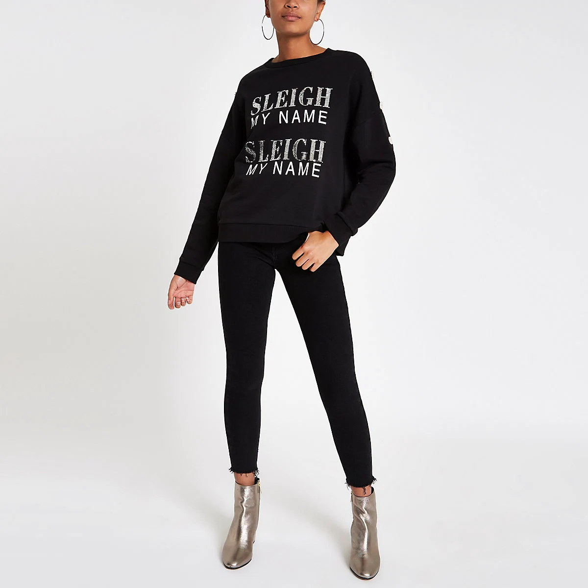 Black ‘Sleigh my name’ embellished sweatshirt, €45 online exclusive at riverisland.com