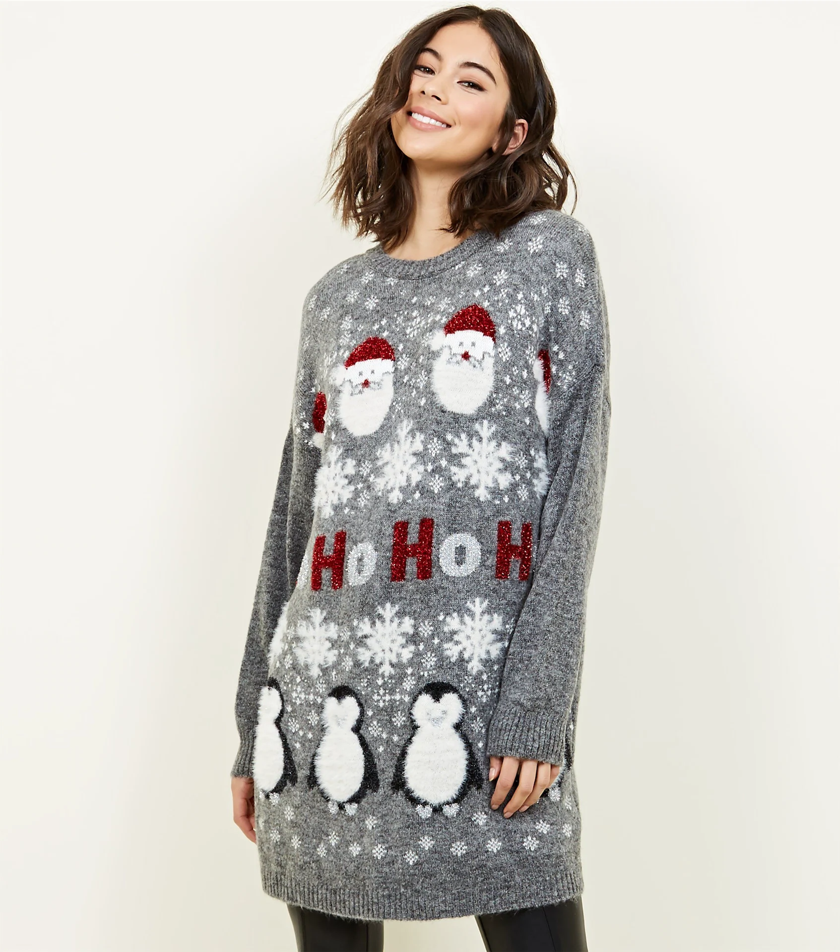 Grey tinsel slogan longline Christmas jumper, €28.19 at New Look