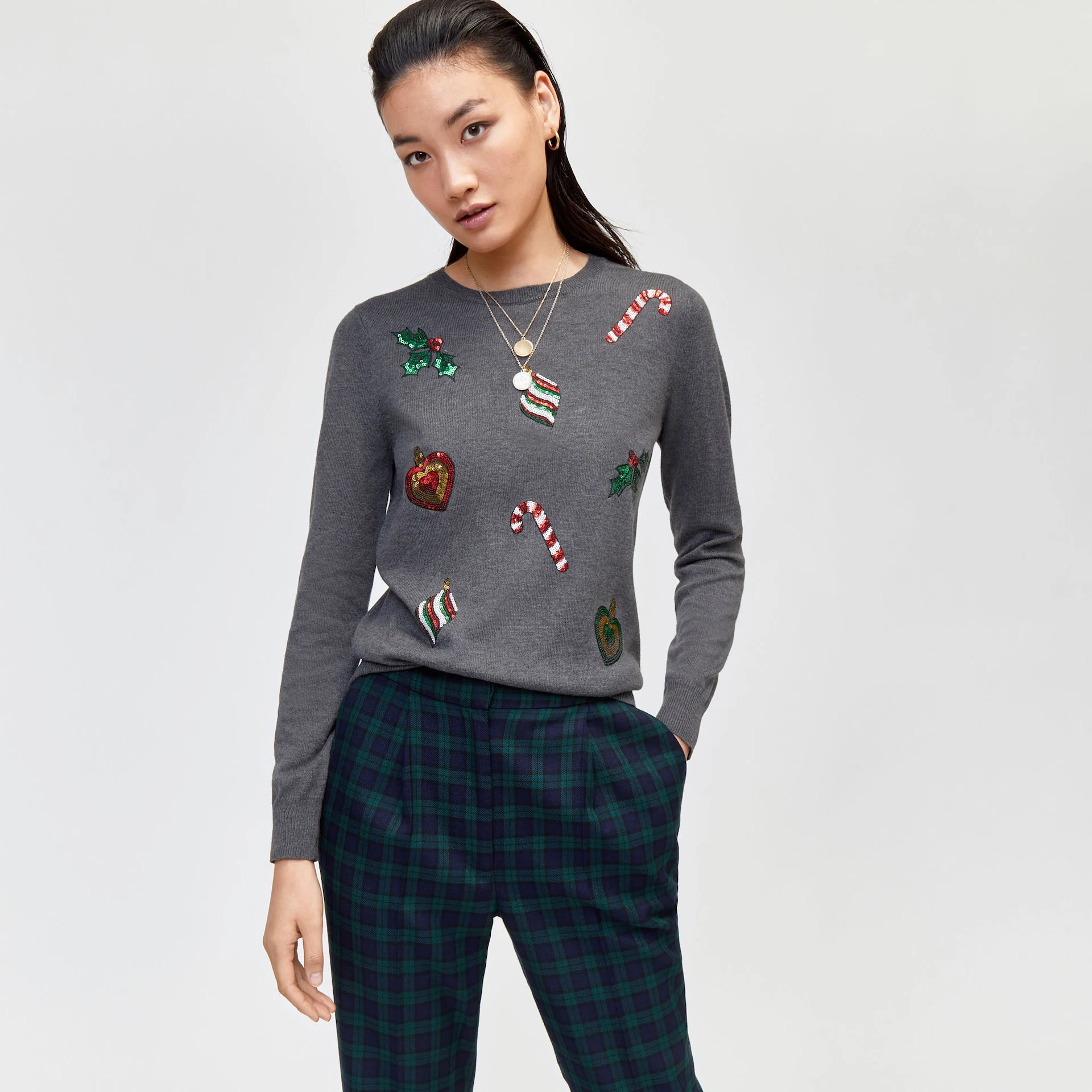 Asos Design Christmas slogan jumper with sequins, €38.71 at asos.com
