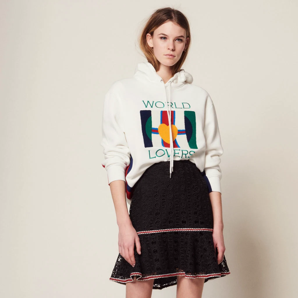 This Sandro skirt with frill finish could look as feminine, or not, as you like. Styled with a hooded top, it feels quite cool and sophisticated. Paired with heels and a blazer, it will look modern and sexy.