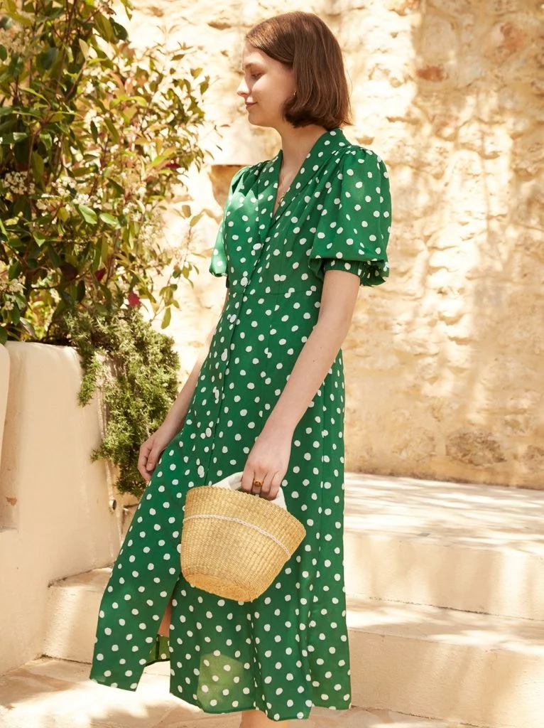 Siena green polka dot tea dress, €152 at Kitri