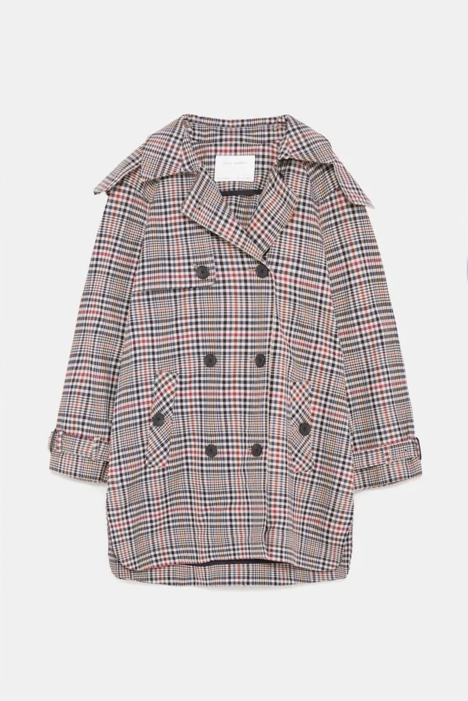 Short check trench coat, €59.95 at Zara