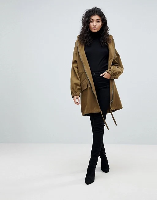 A khaki parka is an undeniable classic. It goes with everything and is a stress-free option for those winter mornings. This Asos option is lightweight which means you can easily place five layers underneath for extra warmth and comfort.