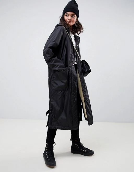 Maxi borg lined rainwear, €82.95 at Asos