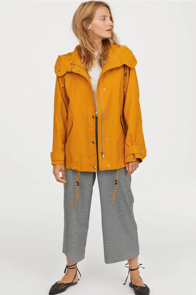 Animal print is everywhere this season and has made the transition into raincoat territory with this Zara number. If you don’t want to dip fully into the leopard print trend, semi-sheer is a great way to introduce it to your daily wardrobe without it being leopard overkill. It has a swinging Sixties vibe and will add sufficient edge to the simplest of outfits.