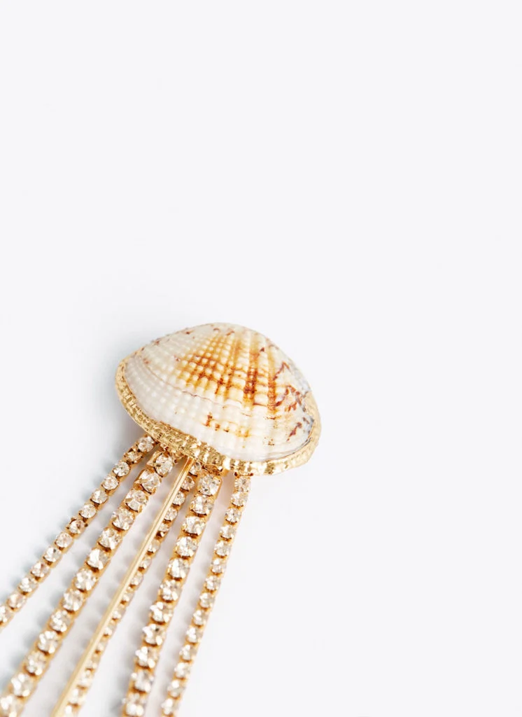 Shell brooch with rhinestones, €19.95 (was €49) at uterque.com