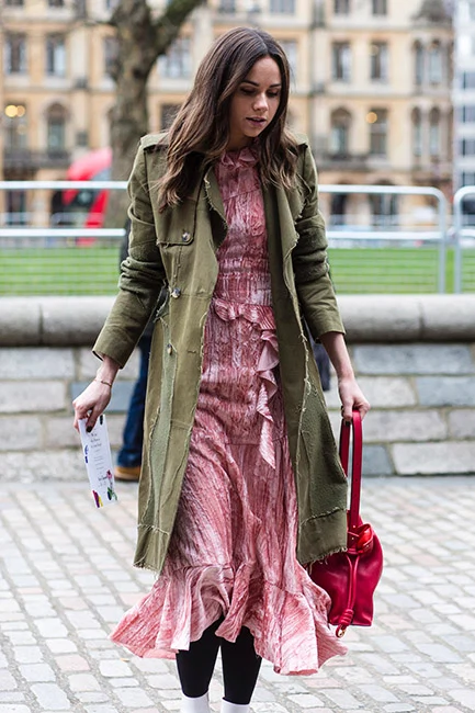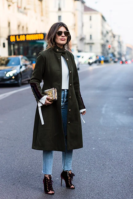 While we’ve been quietly obsessing over head-to-toe brights, heritage checks and every shade of silver, the fashion pack has been leading the charge in military inspired jackets and army-esque coats. They’re a universal favourite again with stylish women as diverse as blue-blooded Olivia Palermo and quirky blogger-turned-designer Leandra Medine, with both of them embracing the look, albeit in their own individual way. The reason for this renewed popularity is simple. An army jacket goes with everything. It anchors florals, diluting any fussiness or overly feminine associations. When worn with denims, your outfit immediately becomes so much more than the sum of its parts – this kind of utilitarianism is the epitome of effortless chic. Crisp tailoring takes on a fresh modernity when juxtaposed with the rough and readiness of a khaki throw-on, while extravagant heels simply feel less try-hard with the help of an oversized earthy green overcoat.