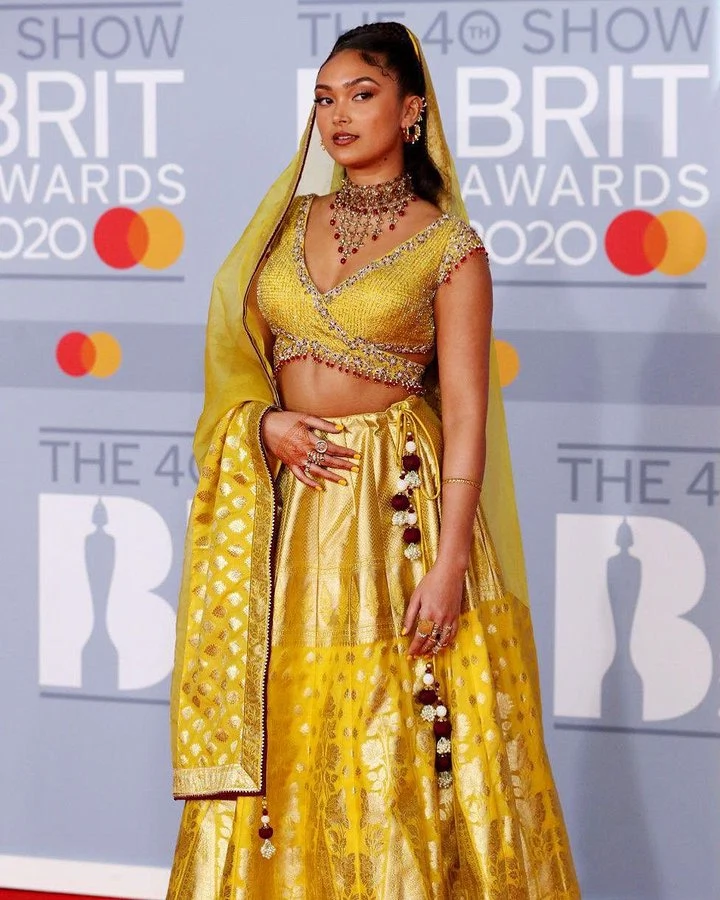 Joy Crookes, who was nominated for the rising star award, also wanted to send a message. Dressed in a traditional south Asian costume, she did chose it so “young girls can see someone who looks like their mum, their auntie, their gran on the red carpet at the Brits.”