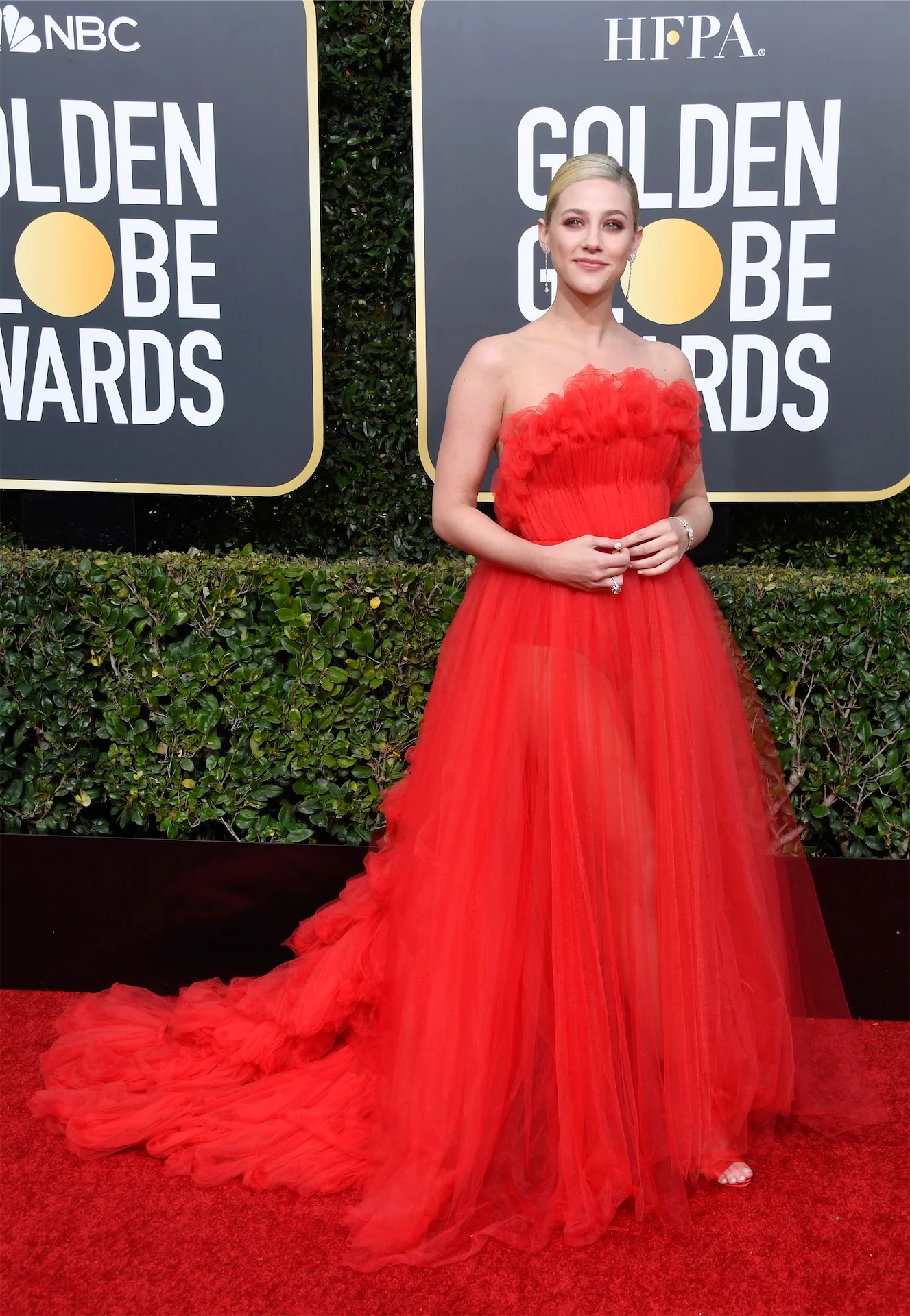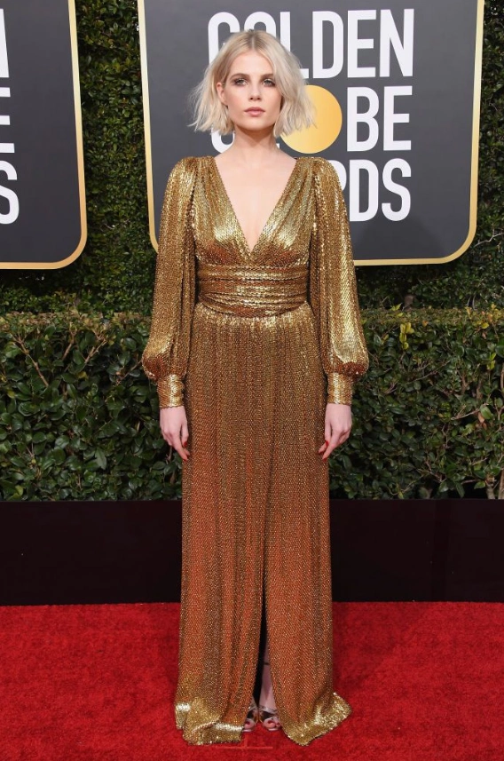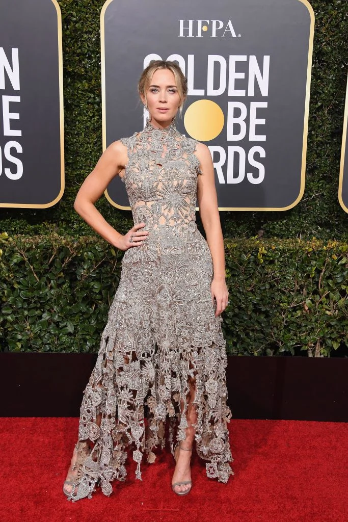 Also, notably, Jessica Chastain walked the Golden Globes red carpet wearing designer Riccardo Tisci, the new artistic director of Burberry’s very first custom red carpet look. The designer, formerly of Givenchy, took over the iconic British brand in 2018.