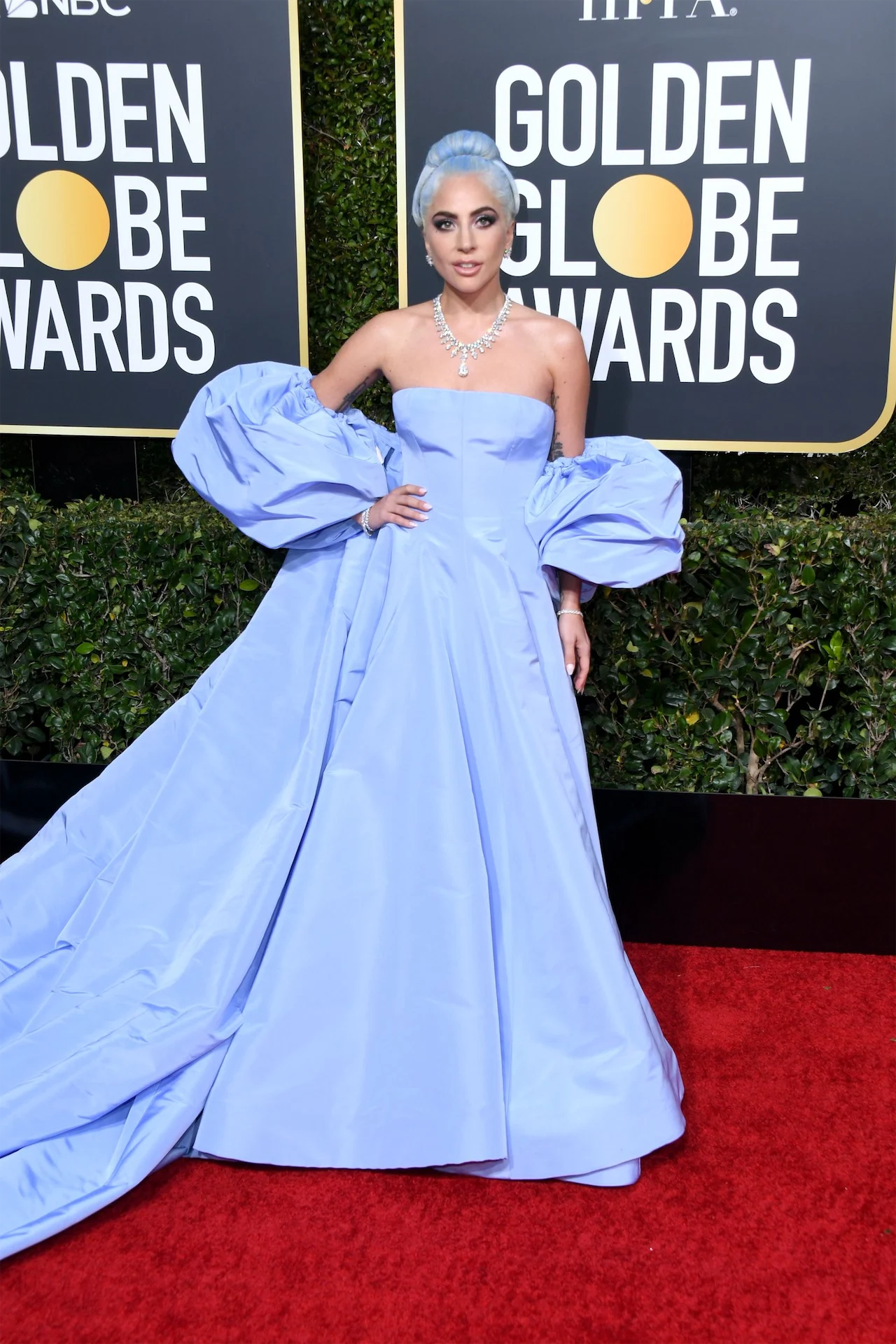 Other notable gowns were worn by Lupita Nyong’o and Regina King, while Lady Gaga’s lavender Valentino Couture gown with her hair and eyeshadow a similar hue (inspired by Judy Garland’s dress in the original A Star is Born) also stood out.