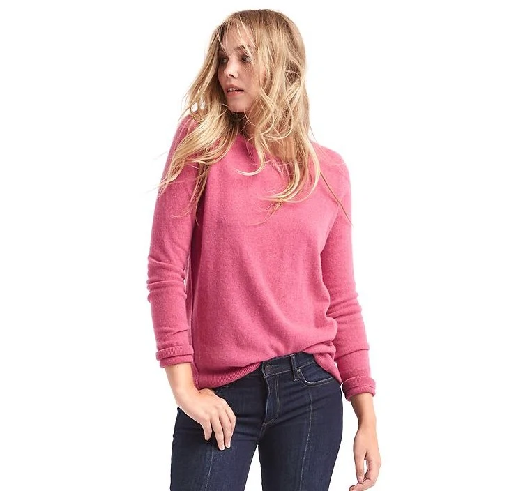 The great thing about this Gap sweater is that sizes range from XXS to XXL.?Round necks look great in oversized styles, so I’d go large with this one and wear it almost like a tunic top.