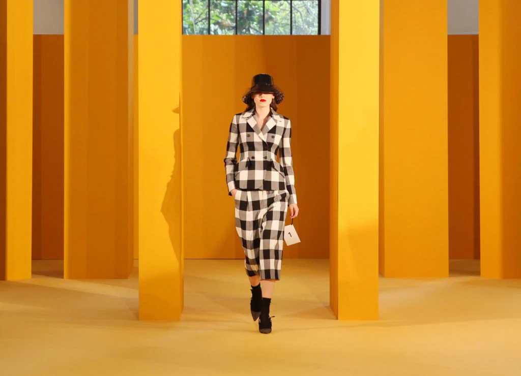 Dior black & white check tailored jacket with co-ordinating culotte trouser. Photo: Brown Thomas