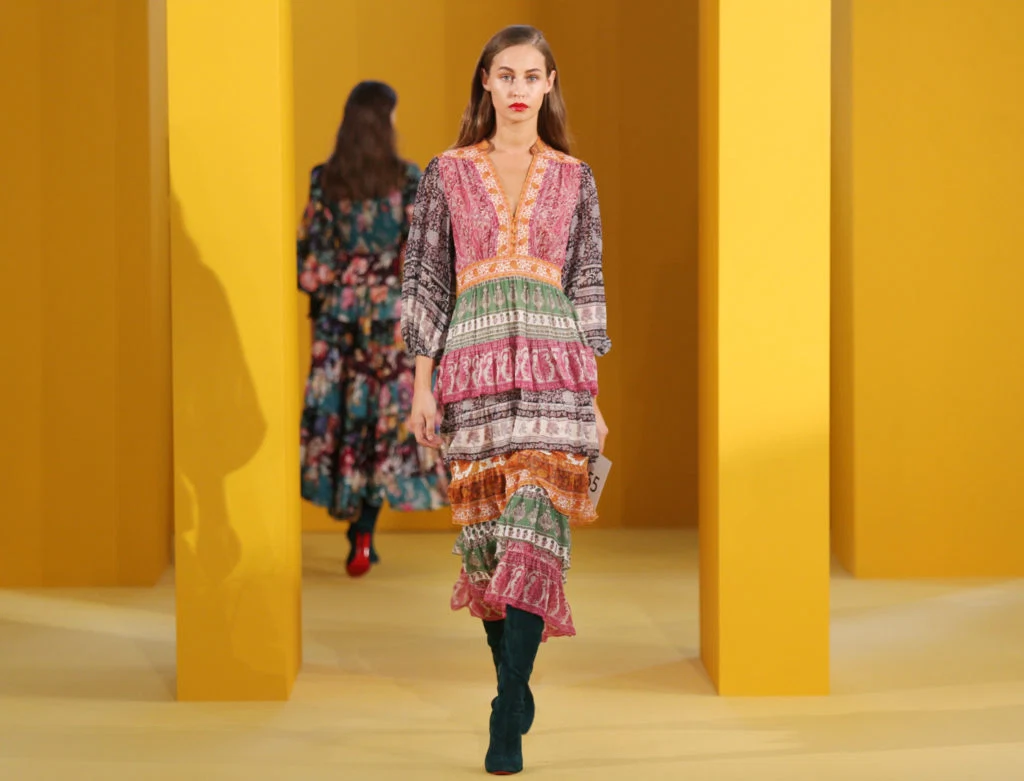 Dries Van Noten, Valentino and plenty more saw a celebration in the joy of being girly on the catwalk today. Ruched satins, bows and organza in lemons and pinks showed a grown-up femininity on the catwalk, and will be a welcome way to transition from the light and sugary midi dresses of both 2018 and 2019’s summer seasons. A special mention for standout summer brand Zimmermann, who transitioned seamlessly into AW with a more muted palette of blues, greens and purples. The Australian brand kept their signature florals and floaty silhouttes, but moved to a more modest length for the colder season.