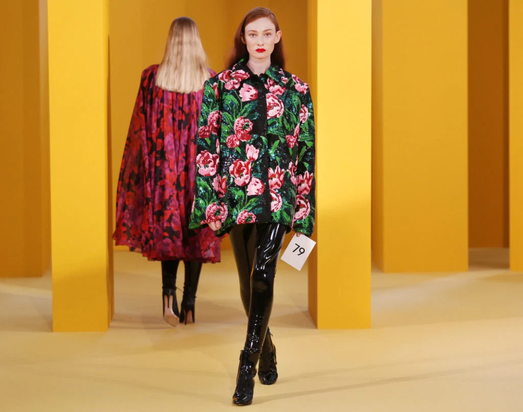 Summer is always dominated by florals in every form, but in contrast to last season’s microscopic blooms, this season at Brown Thomas sees the garden at its most unapologetic. Big and blooming and very colourful, the unmistakable Richard Quinn returned to the catwalk with his signature florals, moving towards a more luxe territory for winter — think velvet, sequins, and rich greens and pinks. A few pieces were very reminiscent of Erdem, which set Instagram on fire earlier this year with their pink-and-red palette, but Richard’s clever additions of pleated swing dresses and bejewelled trimmings shone a new light on an old favourite.