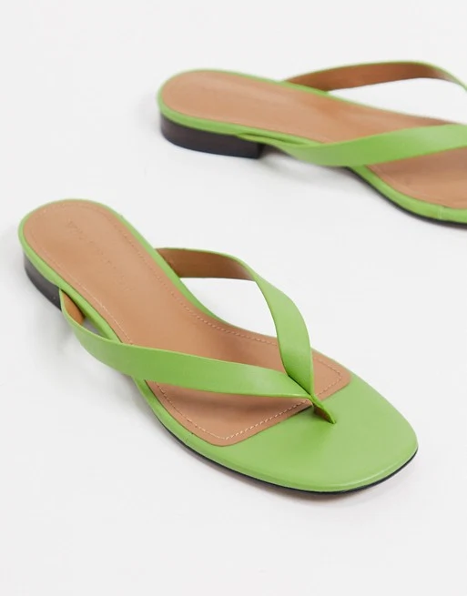What What Wear Cali toe thong flat sandals in green leather, €117.51 from ASOS