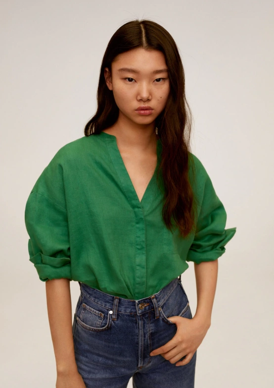 Mao collar linen shirt, €39.99 from Mango