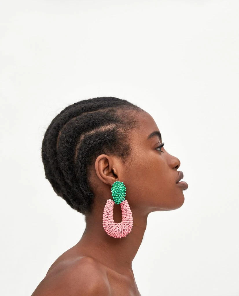 Forget statement necklaces, as the summer season approaches, it’s all about head-turning, eye-popping earrings. I like the mix of baby pink and green beading: the striking contrast adds a further edge to these quirky but beautiful earrings. These bright, dangly hoops are not for wallflowers.