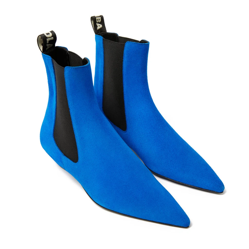 Blue split leather elastic ankle boot, €245 at bimbaylola.com