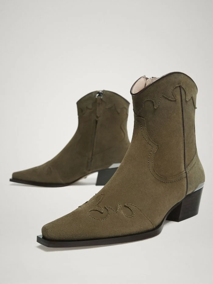 Khaki suede leather cowboy boots, €149 at Massimo Dutti