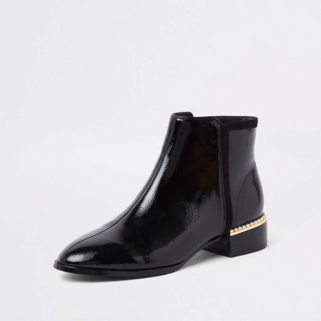 Black patent leather pearl trim boots, €60 at River Island