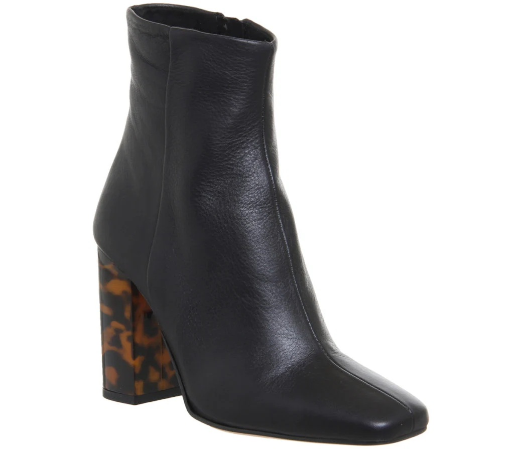Black block-heel boots with tortoiseshell heel, €102.50 at office.co.uk