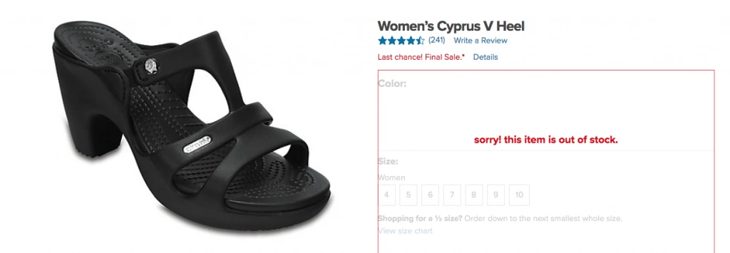 Okay, now another bombshell. High heeled Crocs are sold out everywhere.