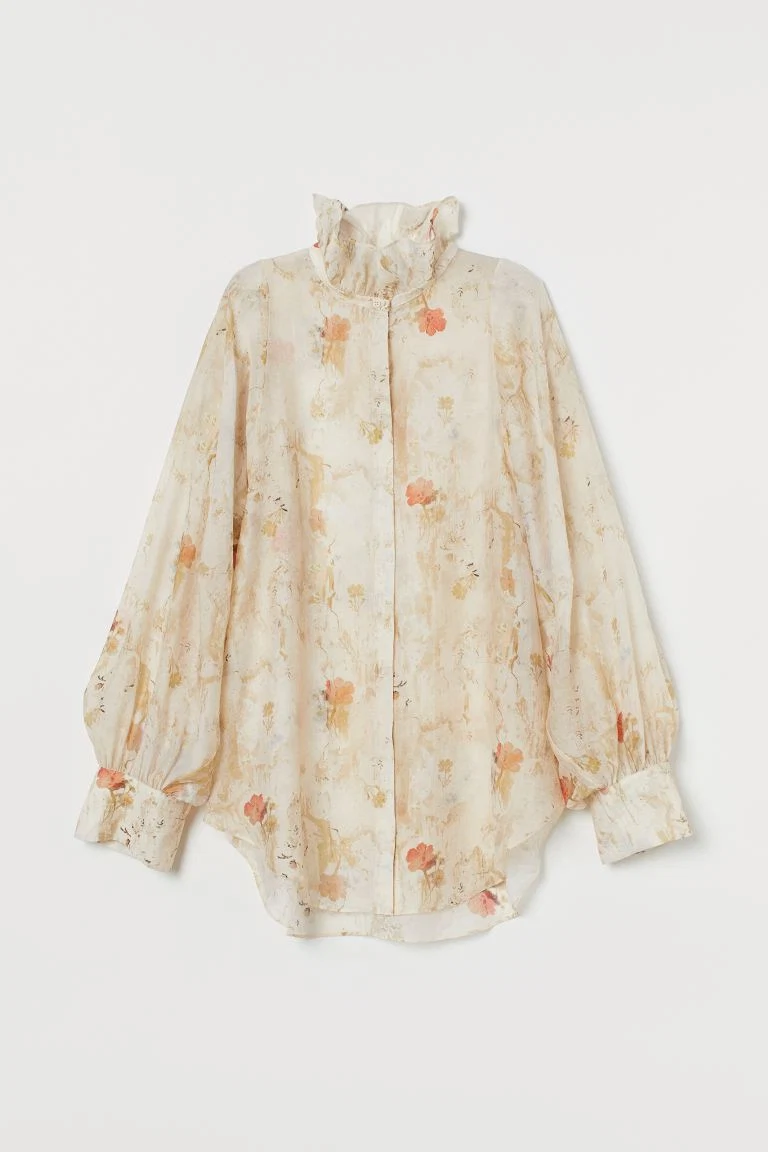And of course, as it is a Conscious collection, the line focuses on creating this mood with sustainability in mind. H&M itself bills it as “creating beauty from waste” – almost every piece in both the women’s and men’s collection is crafted from a material that would have otherwise gone to waste. H&M are using a brand new process, launching with this collection, called Agraloop Hemp Biofibre, which converts food crop waste into a new natural fibre – in this case, oil-seed hemp. Whether its recycled cotton and polyester, down to the prints themselves, inspired by ageing wallpaper, the entire collection holds making the old into new in mind.
