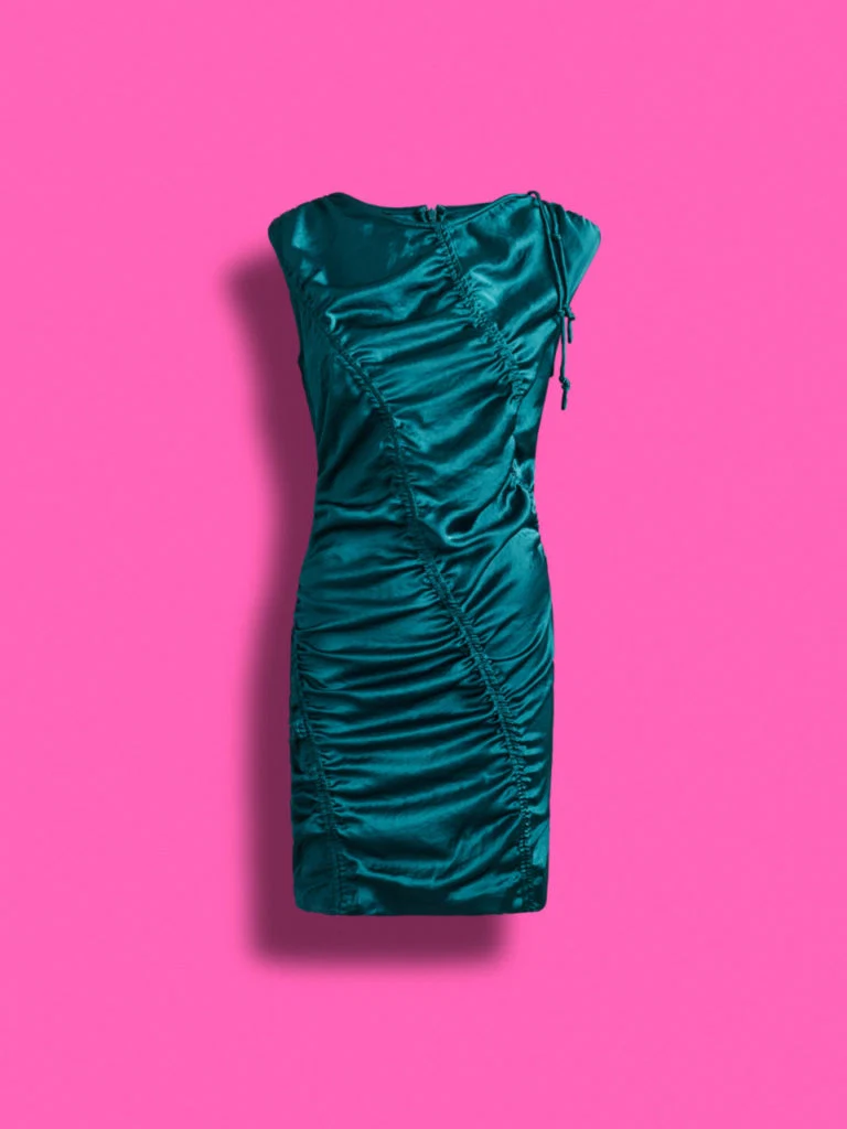 Draped satin dress, €69.99