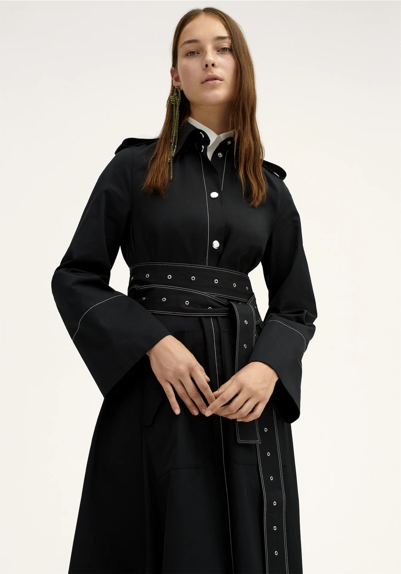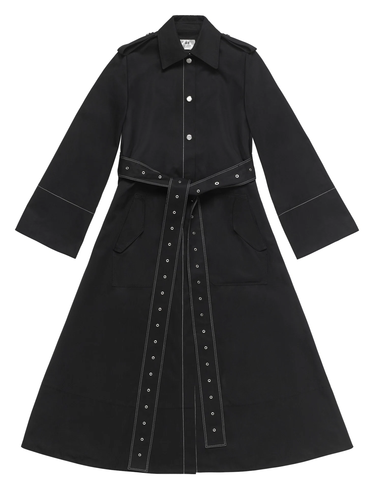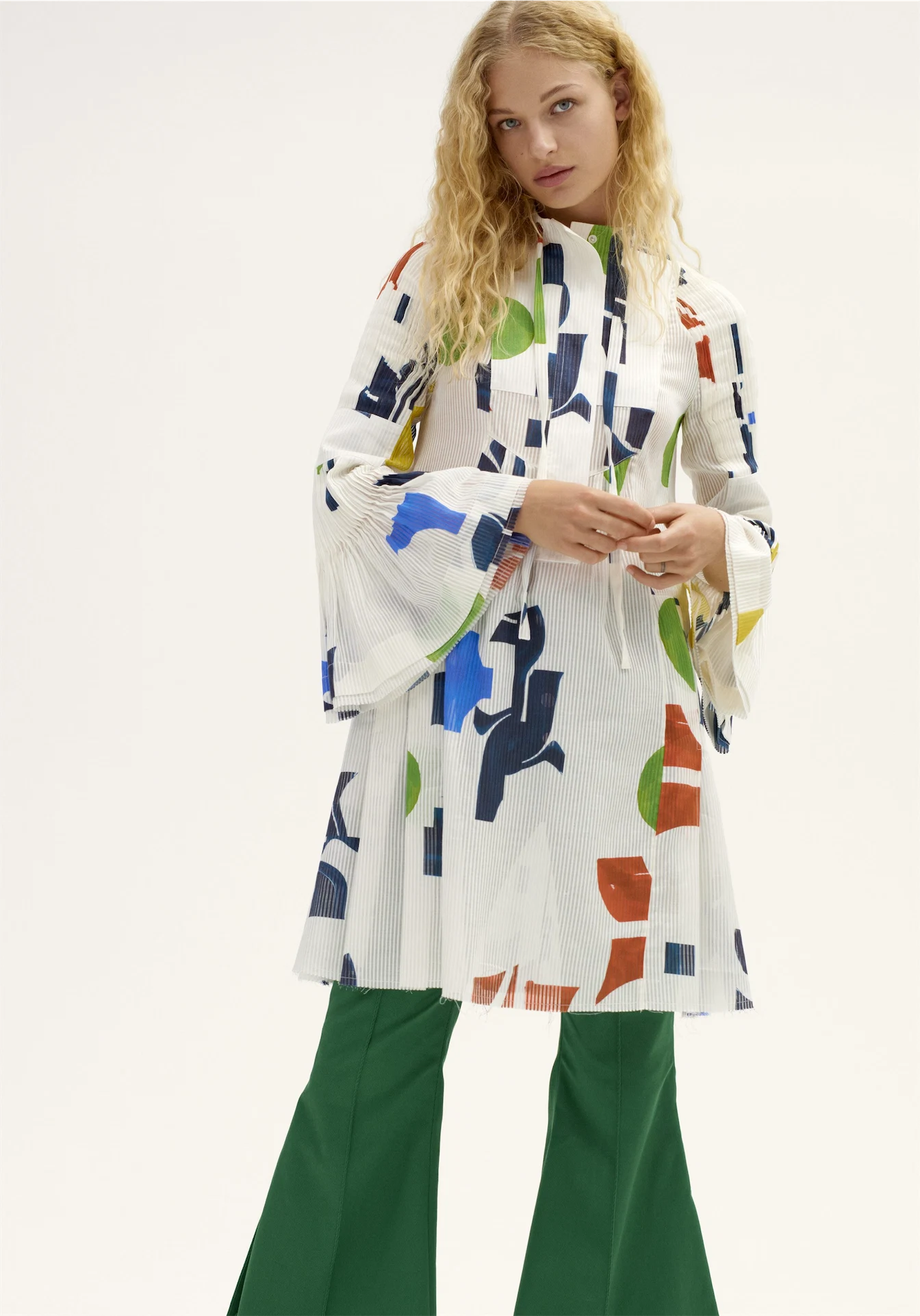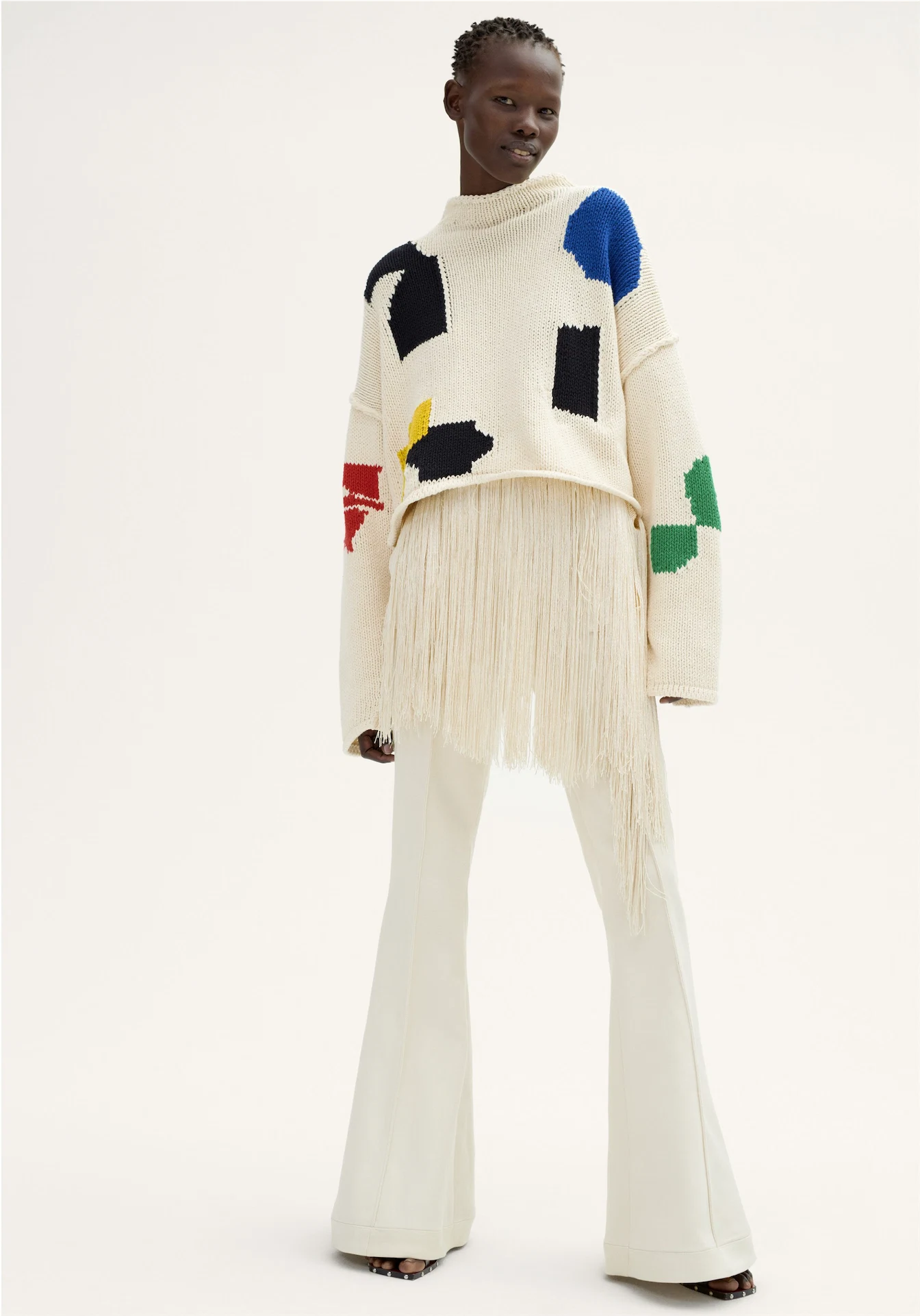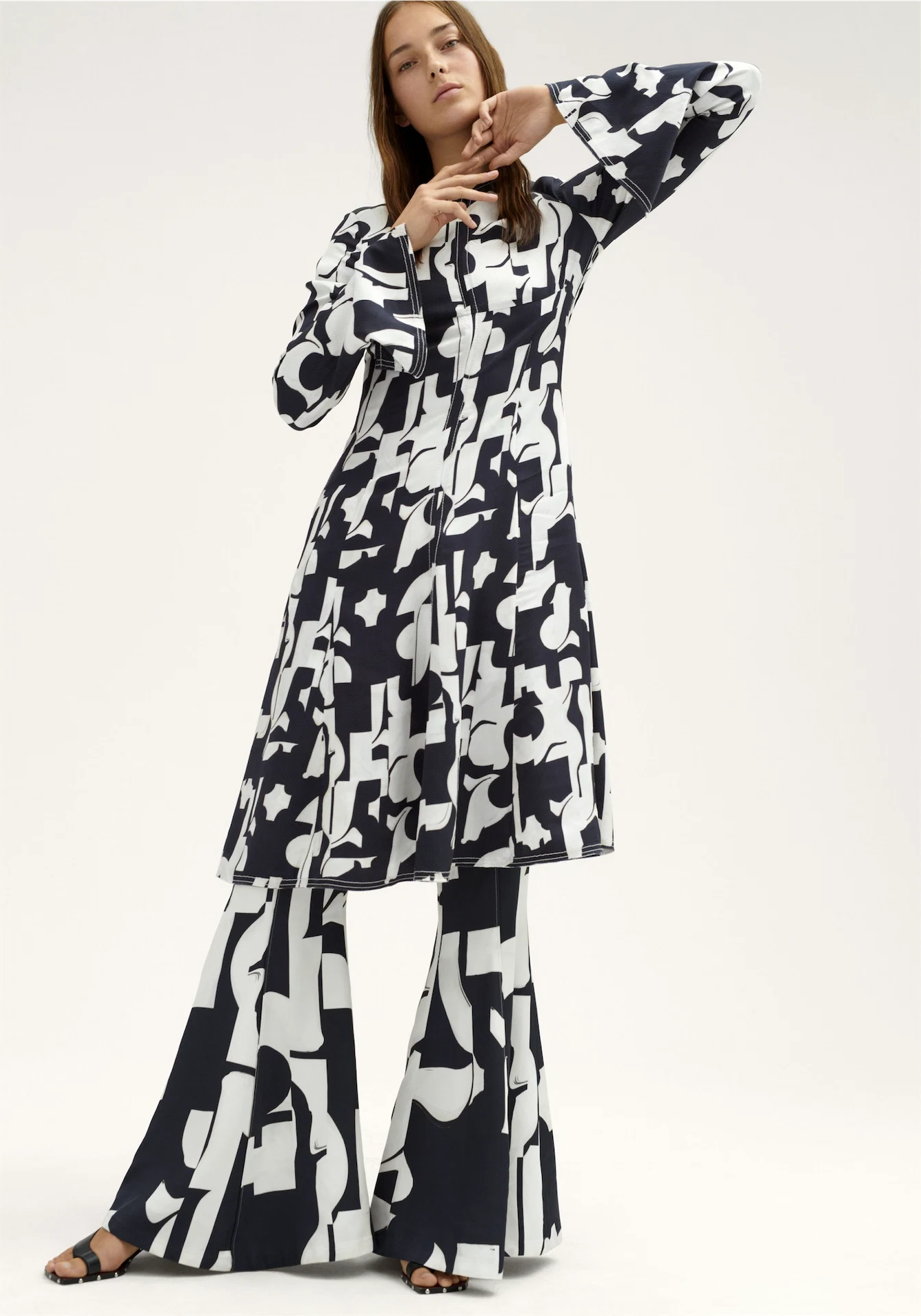 First in the cart will be the studded denim trench- we’re in love with the versatility of its impeccable, tidy tailoring. The Marni-esque trouser ensemble and dresses also make the cut and as for the geo cotton knit cropped jumper, well. It harkens back to late 80’s Lainey creations, in a good way. We also love the simple tunic – so irresistibly Celine with an oversized button placket and ribbing, it could well become a spring staple at just €39.99. And last but not least, the perfect spring pullover with vented sides and a multi-strapped, slightly nautical tote to throw it all in…