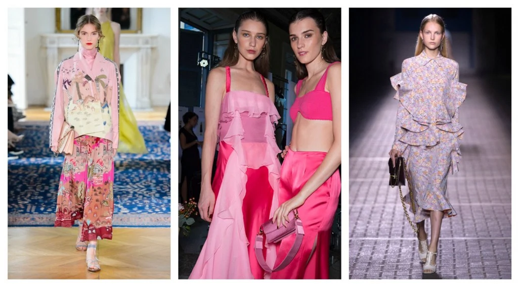 From blush and rose to fushcia and magenta, pink is this summer’s hottest hue. As seen at Valentino and Blumarine, the trick here is mix and matching plentiful shades of pink – one block of colour will no longer suffice. But avoid looking too matchy-matchy by choosing pieces adorned with fun, quirky prints or try adding punch with a box bag in a strong, contrasting colour as seen at Mulberry. A sweep of red lippy is the perfect finishing touch.