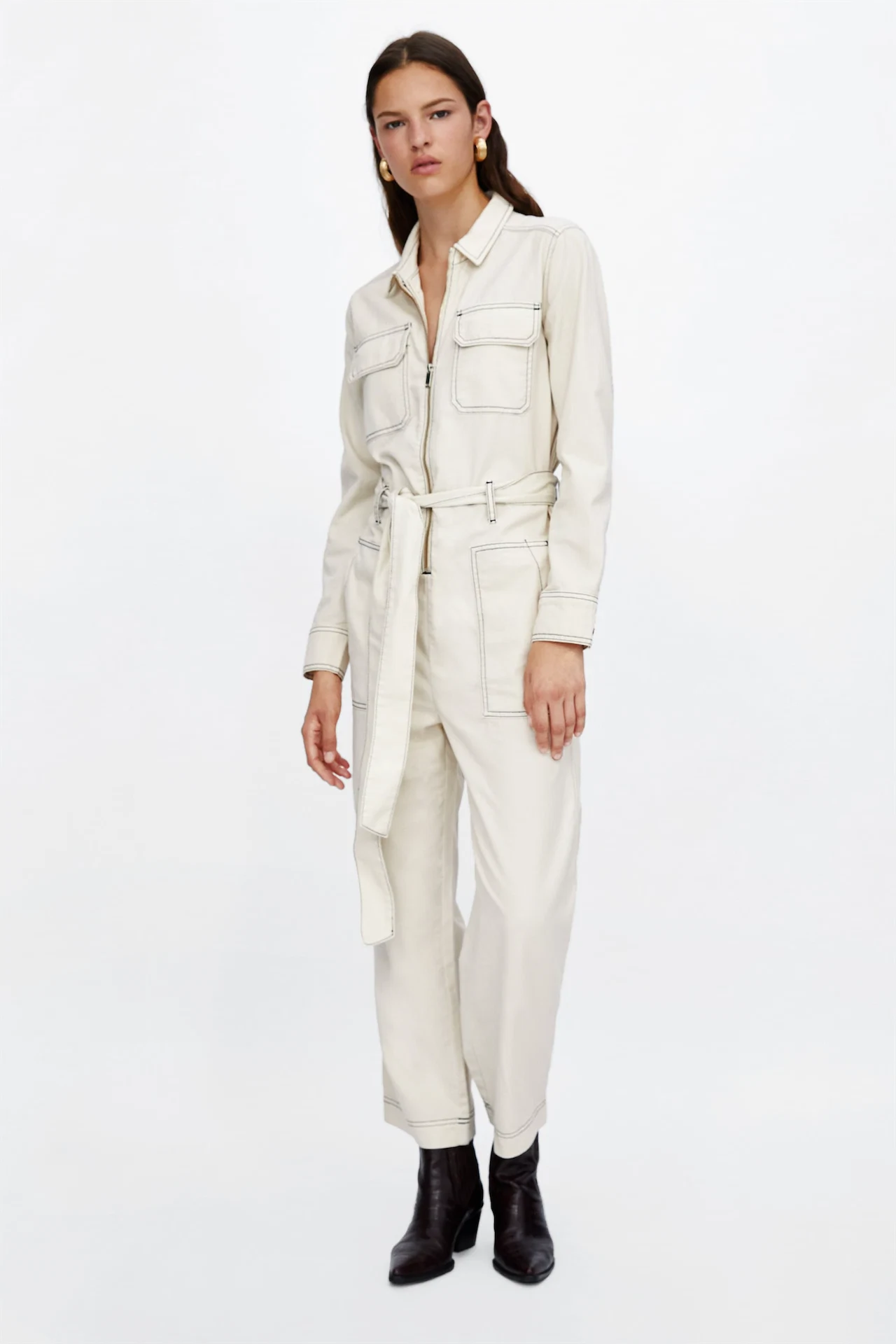 Jumpsuit with contrasting topstitching, €49.95 at Zara