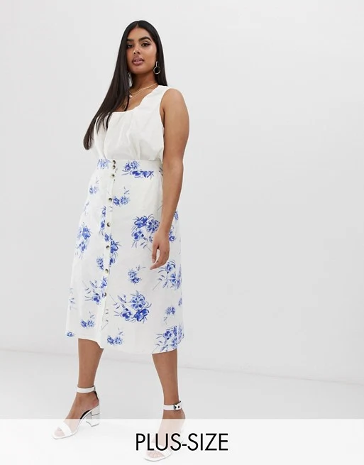 Neon Rose plus button down midi skirt, €44.24 at ASOS