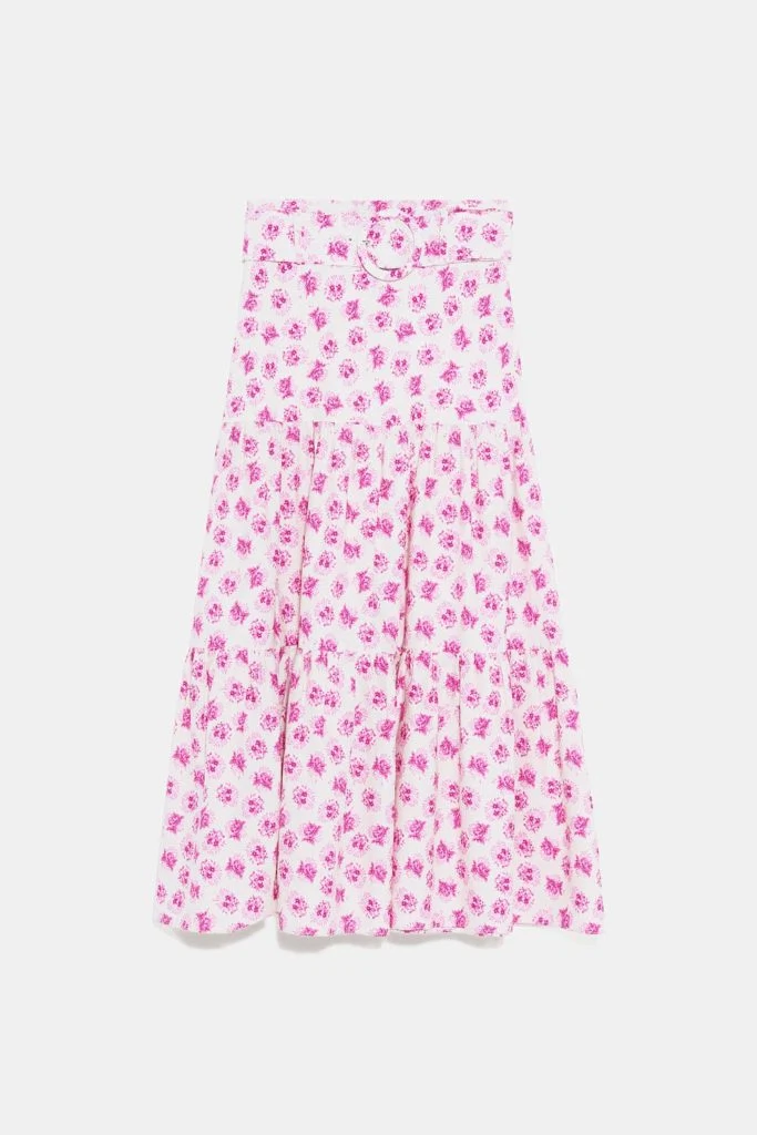 Printed skirt with belt, €49.95 at Zara