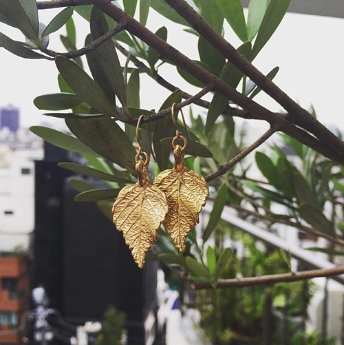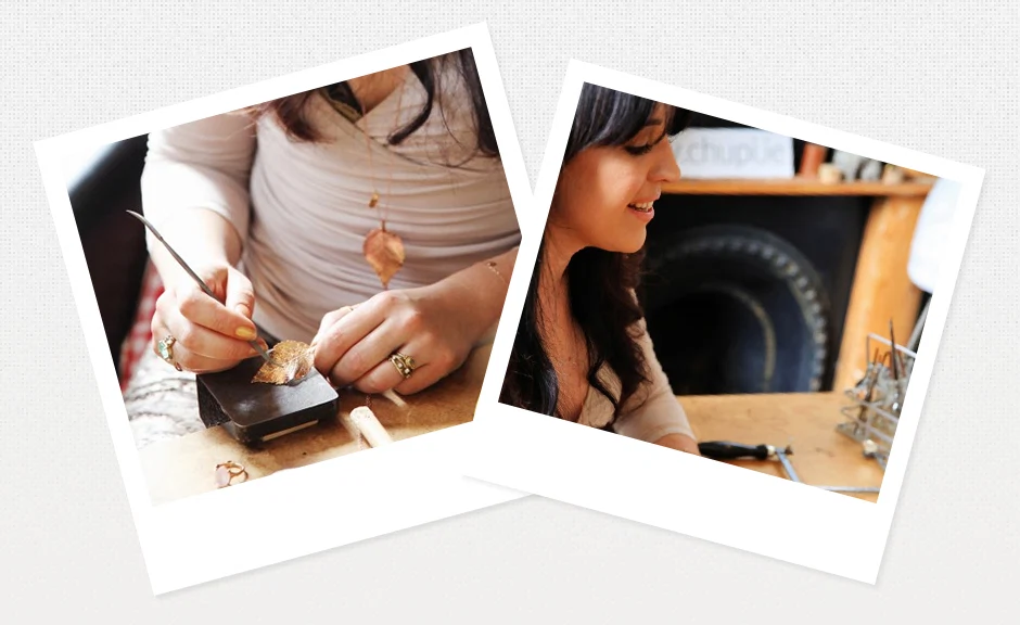 Chupi strives for uniqueness. Think rings shaped like errant swan feathers, silver wild ivy earrings, simple necklaces with 14k gold acorn pendants and bangles and rings cast from actual hawthorn twigs, the ridges of the bark apparent to sight and touch. She even made her own pieces for her wedding to Brian, her long-term partner, casting her and husband’s ring from the same tree, ?My ring was cast from a twig and Brian’s cast from a piece of the bark.? Chupi didn’t just stop there, creating bespoke pieces for all her bridesmaids to thank them for the huge part they played in her and Brian’s big day. DIY brides, eat your heart out.