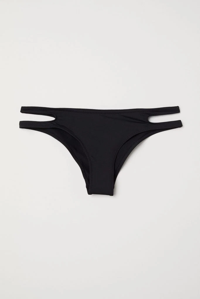 Black bikini top, €4.99, and bikini bottoms, €4.99 at hm.com