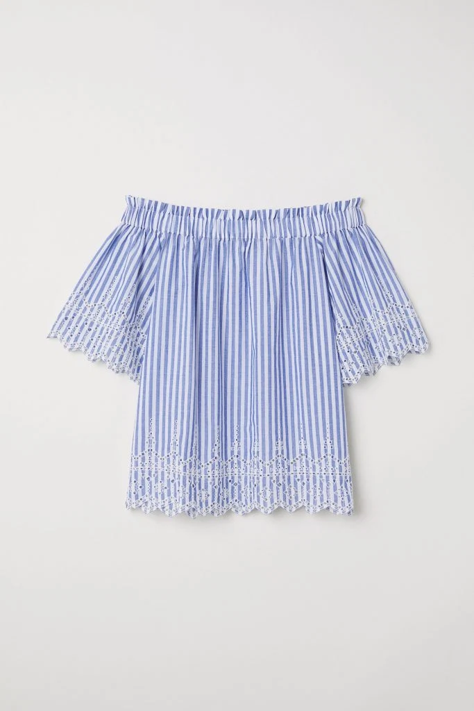 A Bardot neckline looks chic and sexy. This gorgeous striped cotton top with embroidery will work beautifully over jeans when I’m browsing around Dingle village.