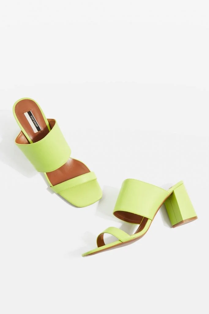 Accessorising is a great way to engage with this trend in a subtle but stylish way. These lime green leather mules from Topshop are a fun and functional way to put a fluorescent pep in your step this spring. These are especially great if you plan to keep your outfit more neutral. By introducing bursts of colour up top (dazzling earrings) or down below (equally dazzling shoes) you’re engaging with the trend while remaining true to your own personal style. Ta-da!