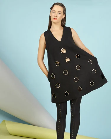 What Hynes brings to the Dunnes portfolio is a true taste of high-end, aspirational fashion, but at an affordable price. Her signature look, with its bold shapes, statement embellishment and unconventional fabrics (neoprene has a strong presence), brings something completely fresh to the Dunnes designer range. We love Paul Costelloe for his classic tailoring and elegant knits, but Hynes’s pieces are catwalk-worthy, and there’s something very exciting about being able to find that kind of high-end fashion in your local Dunnes Stores. She has also very cleverly created a collection that can be worn by women from 25 to 55 – it’s all in the styling, and Hynes has?created a capsule collection of beautiful accessories to accompany?the clothes.