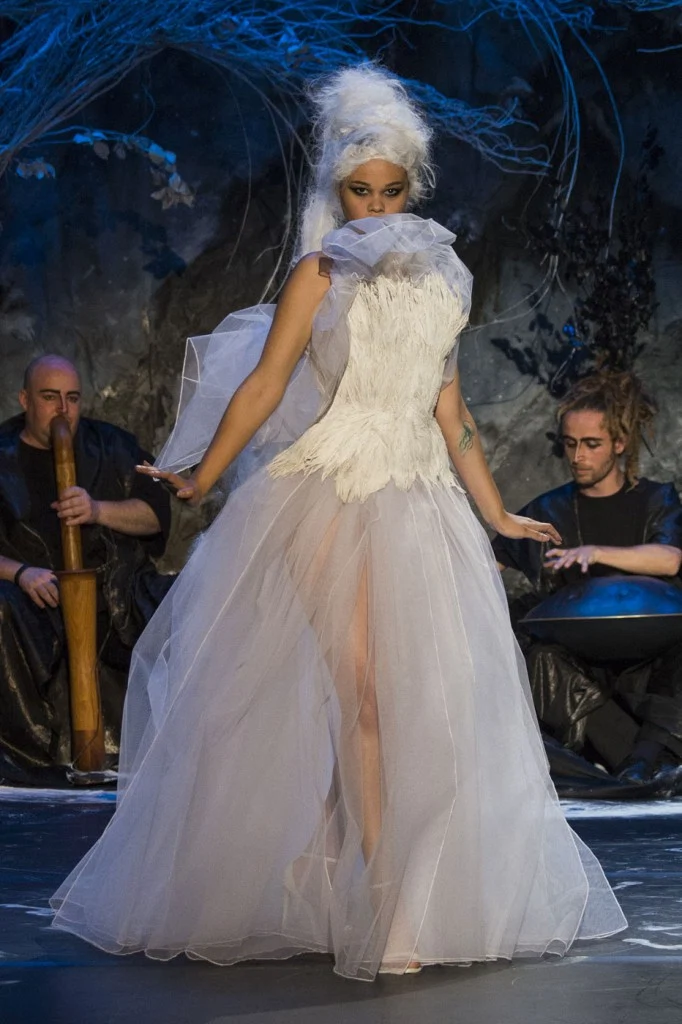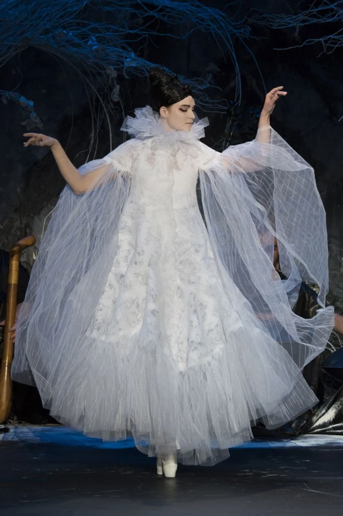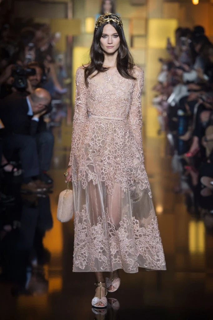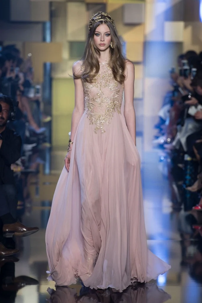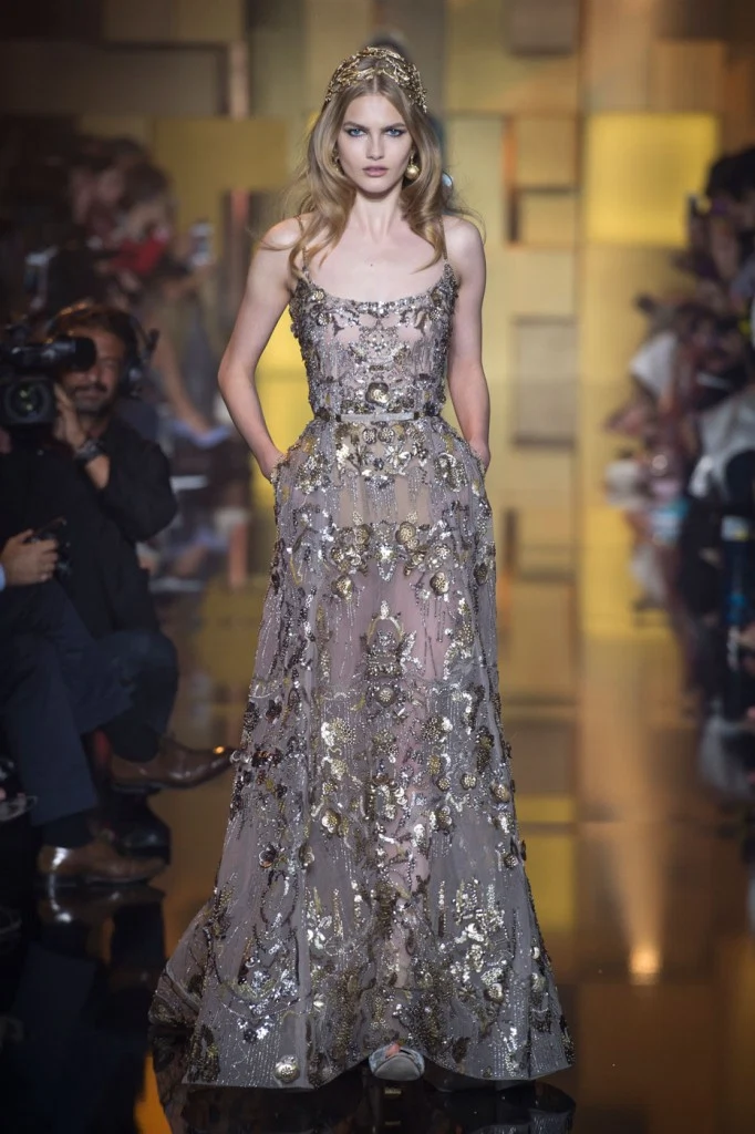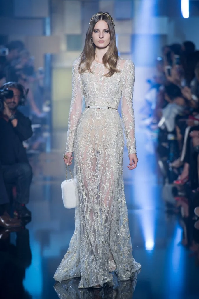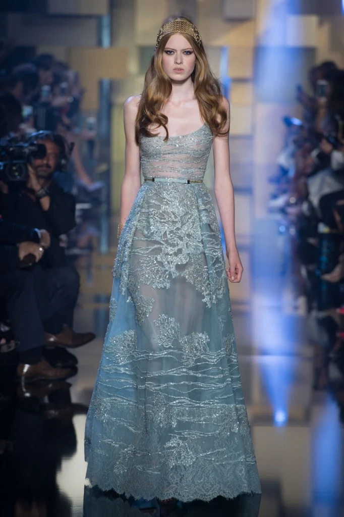 Franck Sorbier’s set was a winter wonderland graced by ethereal ballerina in flawless white designs. Elie Saab went full Princess this season, with absolutely stunning gowns in golds, greens and burgundy, you can guarantee to see a few of them at the Emmys come September. Jean Paul Gaultier remained with fashions?that brought about his rise, including sailor stripes and tights with unusual circular skirts and intricate patterns. Viktor & Rolf took the artistic element quite literally as models pounded the runways wearing heavy printed fabrics edged with wooden frame pieces. As the show went on it became apparent it was some what of a puzzle as pieces were hung on the wall to create complete artworks. Fendi followed Elie Saab’s Disney theme but rather than Frozen princesses they went for Cruella DeVille with monochrome furs and feathers that sumptuously enveloped models.