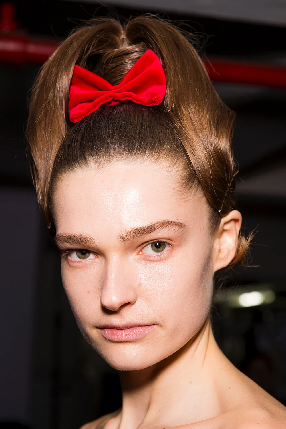 Hair supremo Benjamin Muller told me backstage at Emilia Wickstead that his inspiration was “Sicilian women and The Godfather”. He chose to create two distinct looks for the show — the mother and daughter. The mother look was the more severe of the two and focuses on head shape. The hair is swept over in a side parting, bringing it low over the forehead and tight into the hairline, finishing in an elegant bun. The daughter look is a little more retro — it’s a red carpet look fit for the formal, gala-style dresses in the collection without being too prim.