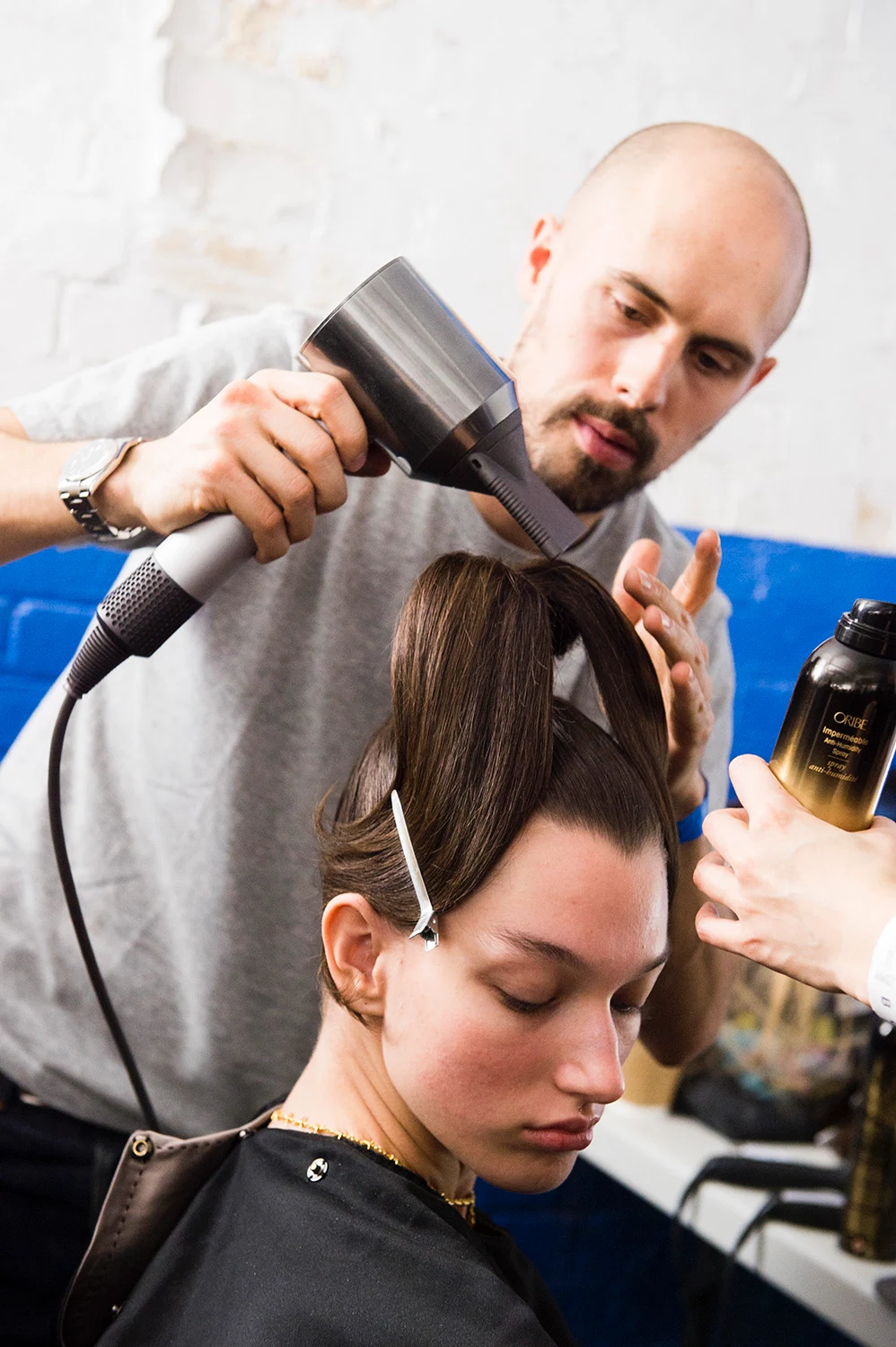 Benjamin Muller working on his ‘daughter’ look backstage at Emilia Wickstead AW19