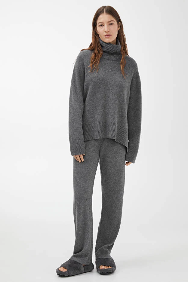 Relaxed cashmere roll-neck jumper, €190 and knitted trousers, €135 at Arket