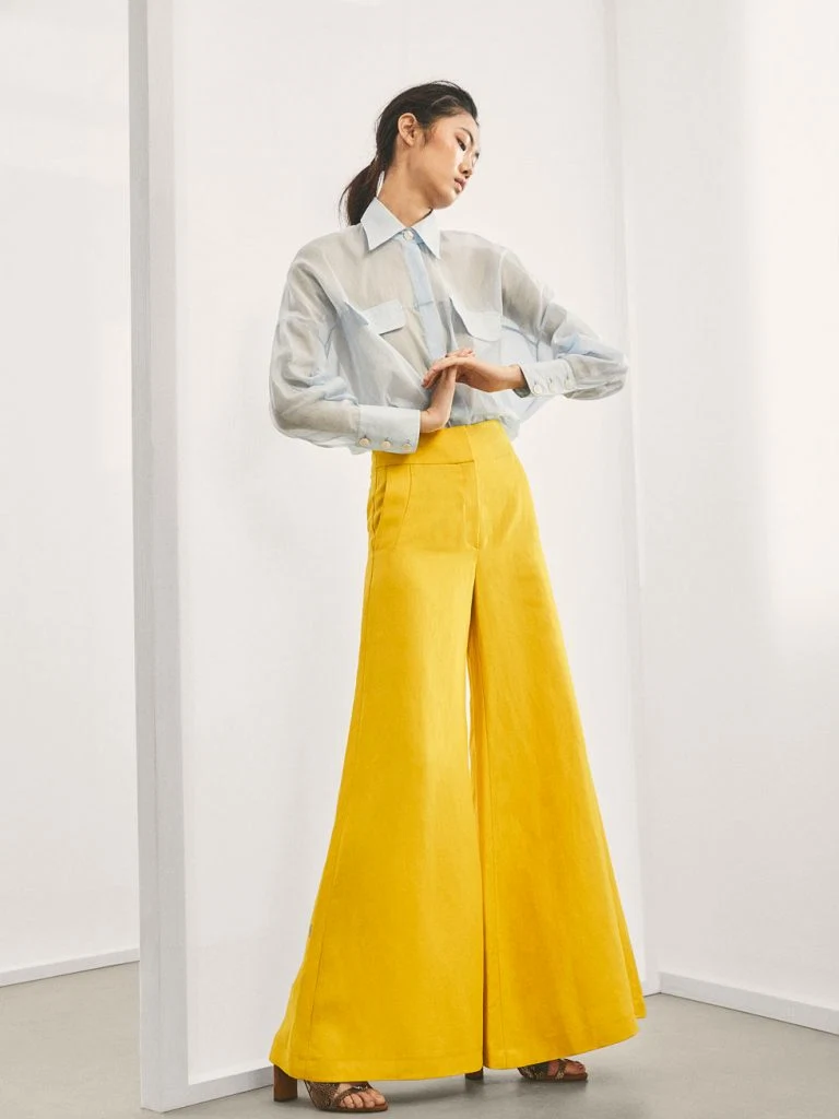I love the easy sophistication of palazzo pants. The width of the leg of this yellow linen pair is exaggerated and makes a real statement.