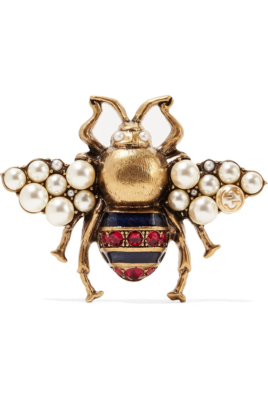 Gold-tone, enamel, crystal and faux pearl brooch, Gucci, €690 at net-a-porter.com